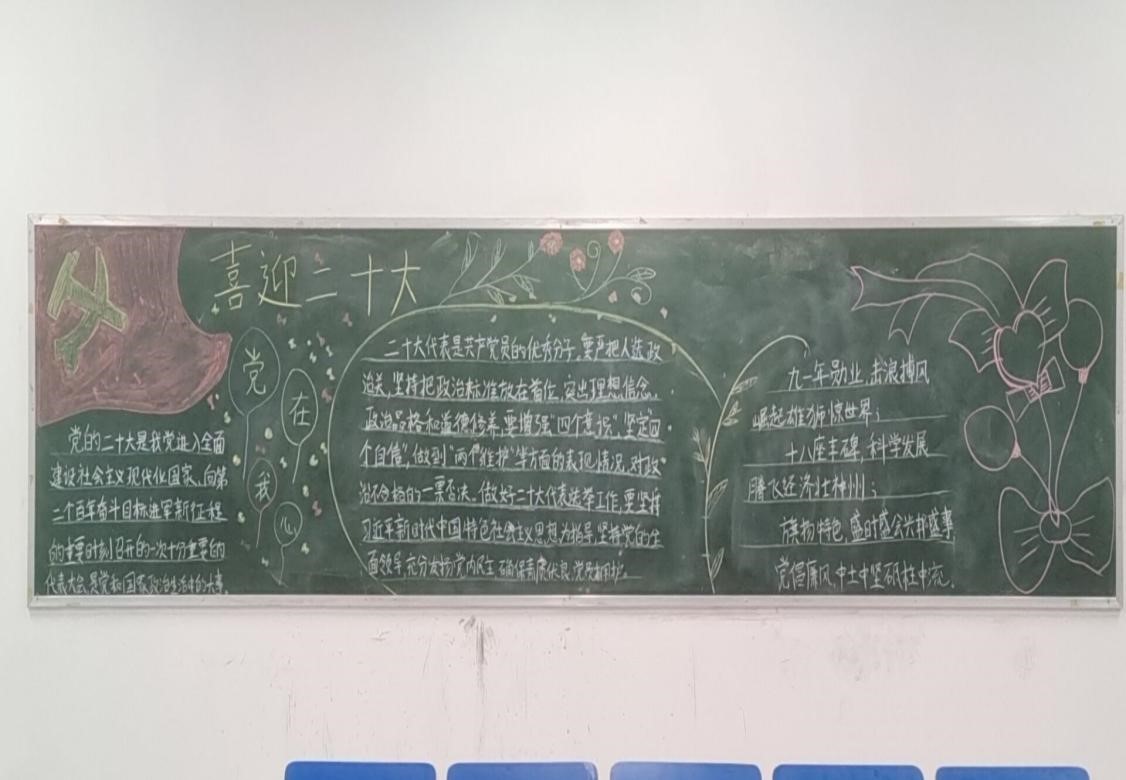 此次的黑板报比赛让同学们加深了对二十大的了解,更好地肩负时代重任,坚定不移地跟党走,争做新青年,永做追梦人,以实际行动为人民谋幸福,为民族谋复兴!