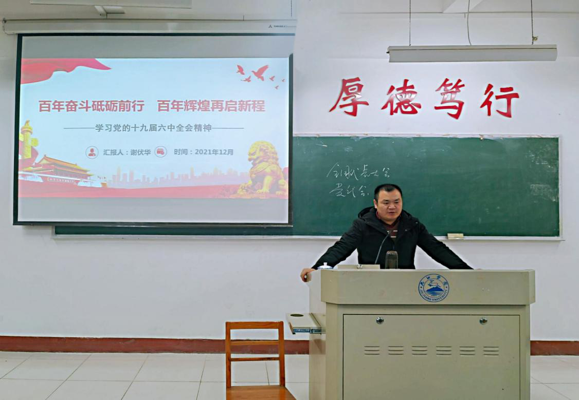 为深入学习贯彻党的十九届六中全会,深入领会全会的精神内涵,12月14日下午,beat365正版唯一官网必一于义丰楼教室组织召开了十九届六中全会精神宣讲会。本次宣讲会由马克思主义学院老师谢伏华主讲,beat365正版唯一官网必一A2121班和A2122班全体同学参加。