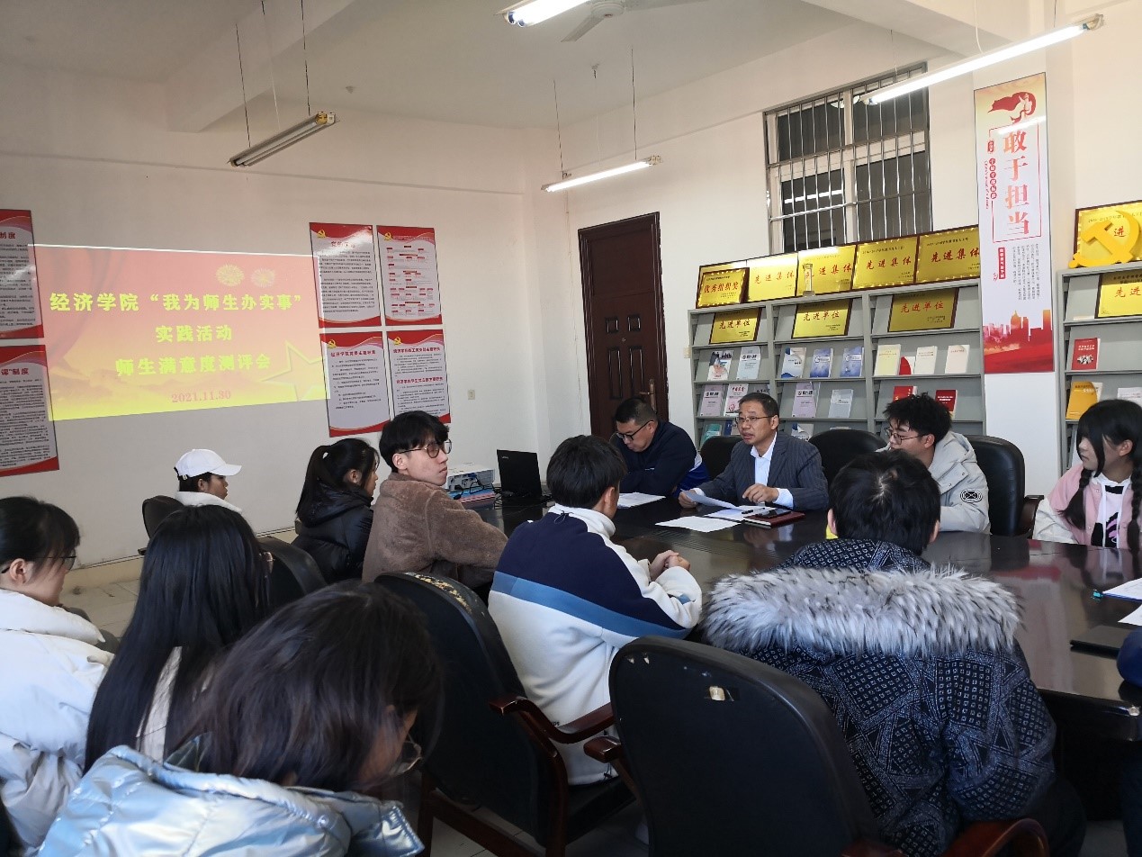 2021年11月30日上午,beat365正版唯一官网必一在义丰楼619会议室召开“我为群众办实事”实践活动师生满意度测评会,学院党委书记漆晗东出席并主持会议,教师代表、学生代表参加本次测评会。