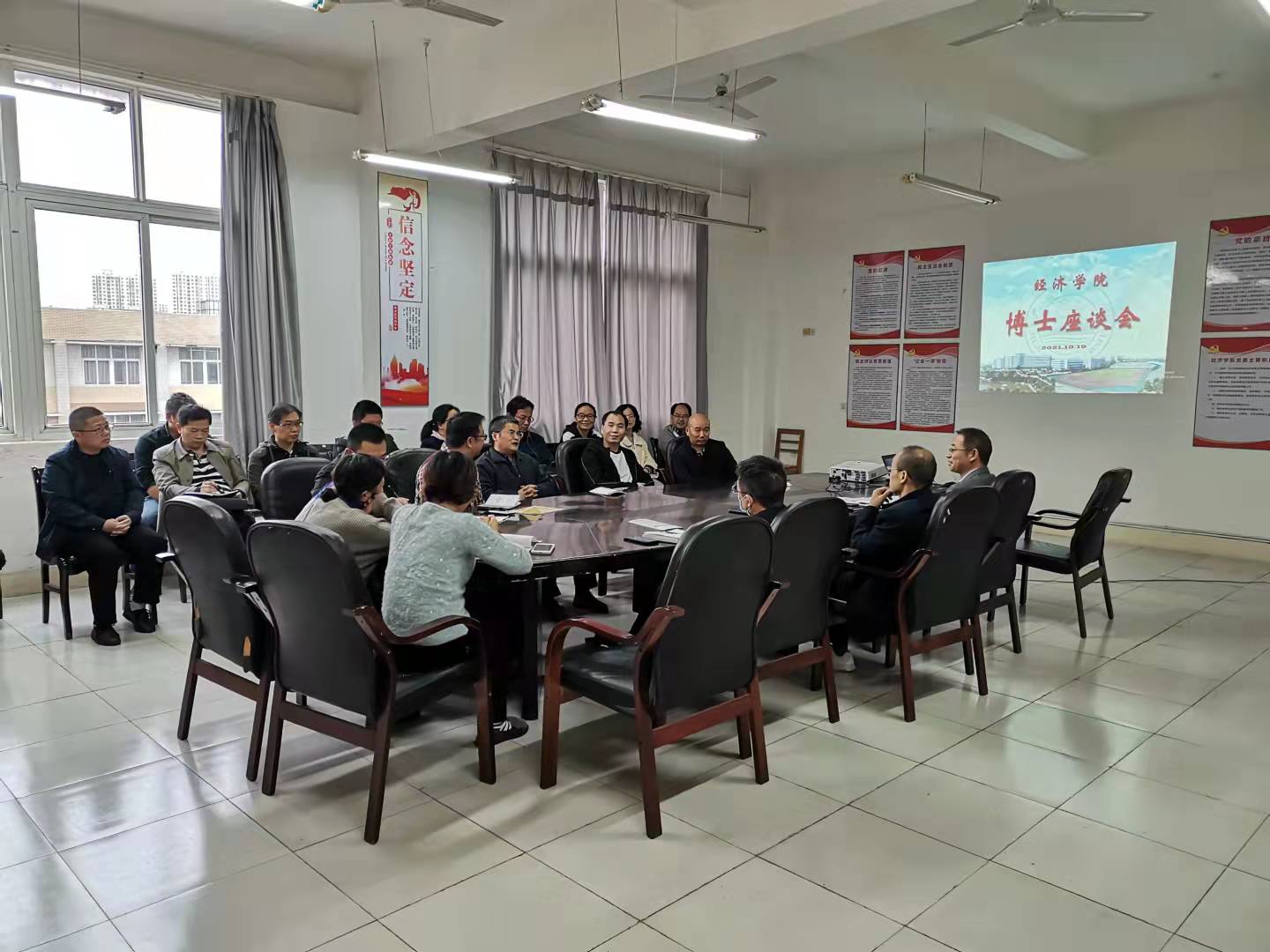 项院长认真听取大家的发言,并作总结讲话。他对博士们提出的建设性意见给予充分肯定,希望博士们围绕教书育人这个中心,做好教学与科研工作。围绕学院申硕工作,在学科建设、凝练学科特色上下功夫。要根据个人的专业特点,结合地方特色和行业特点形成自己的科研优势,经过一段时间的努力探索和科研积淀,在本研究领域形成一定的影响力。