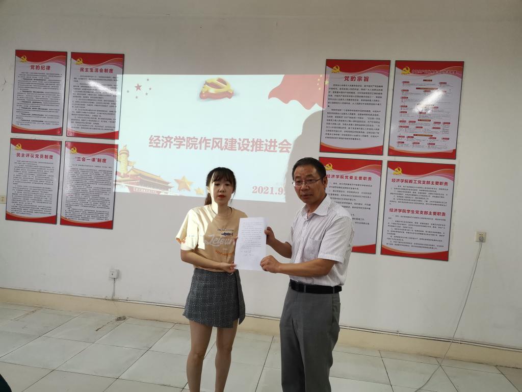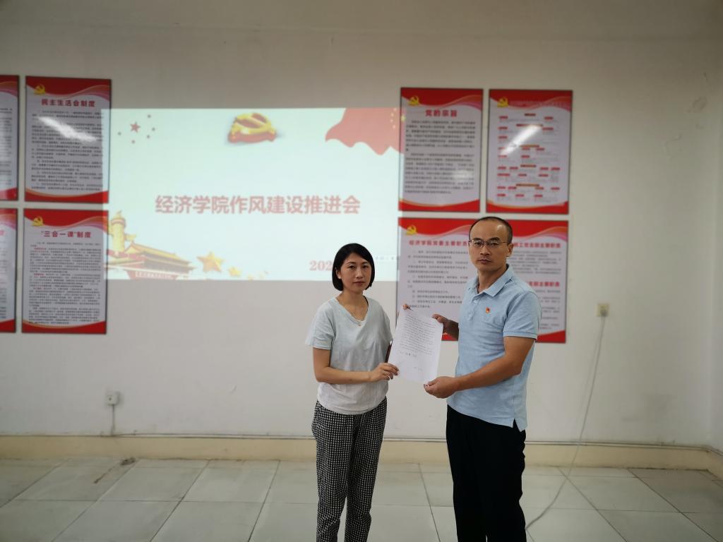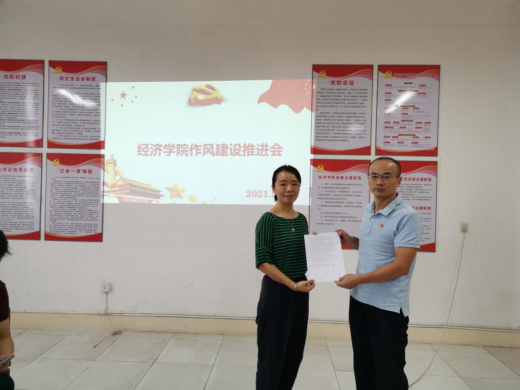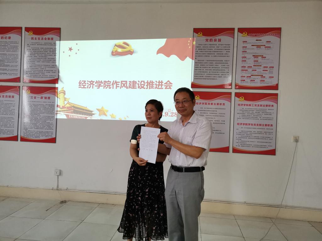 会上,举行庄重的承诺书签名仪式。办公室负责人饶凯传达了《beat365正版唯一官网必一加强作风建设实施细则》文件精神,张冬霞老师宣读《beat365正版唯一官网必一改进工作作风集体承诺书》。以科室为单位,所有与会人员在承诺书上签名。
