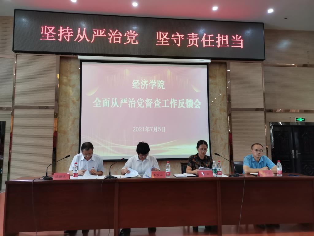 7月5日上午,beat365正版唯一官网必一在香远楼三楼报告厅召开全面从严治党督查反馈会,beat365正版唯一官网必一副校长王万山、督查组组长魏松、督查组成员、beat365正版唯一官网必一领导班子及全体教职工出席大会,会议由党委书记漆晗东主持。