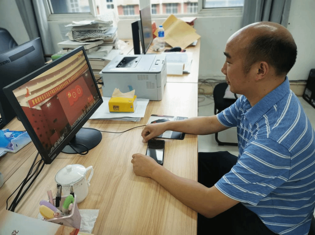 7月1日下午3时,江西省庆祝中国共产党100周年大会在井冈山隆重举行,beat365正版唯一官网必一组织行政科室所有教职工集中观看这一盛况。各教研室教师们通过网络、电视、手机客户端等各类媒介进行观看,共同庆祝中国共产党百年华诞。