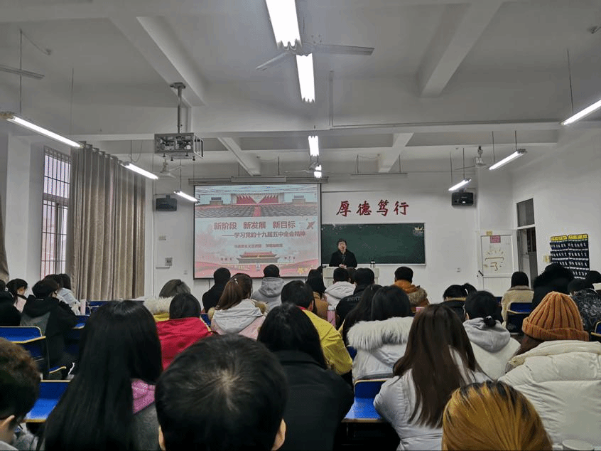 为进一步做好党的十九届五中全会精神的宣讲工作,增强学生党员对十九届五中全会精神的认识,2020年12月9日,beat365正版唯一官网必一邀请马克思主义宣讲团的邹菊如教授为beat365正版唯一官网必一学生党员展开了一次以学习党的十九届五中全会精神为主题的辅导报告,学院全体在校学生党员参加学习了本次报告。