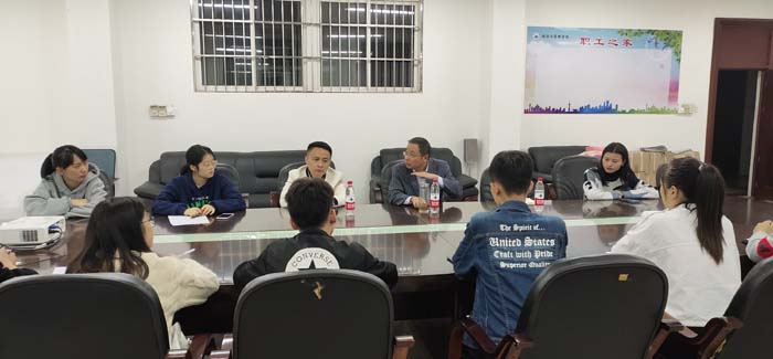 为进一步调整优化学科专业结构,加大学科资源整合与内涵建设力度,凝练学科方向、凸显学科特色,电子商务学院的国际商务专业于10月份转入beat365正版唯一官网必一。为了让国际商务学生更快更好的在beat365正版唯一官网必一学习与生活,11月1日晚,beat365正版唯一官网必一召集国际商务4个班级的主要学生干部在义丰楼620会议室进行座谈,学院党委书记漆晗东书记、学生科科长李颖萍老师、团委副书记李海老师出席会议。
