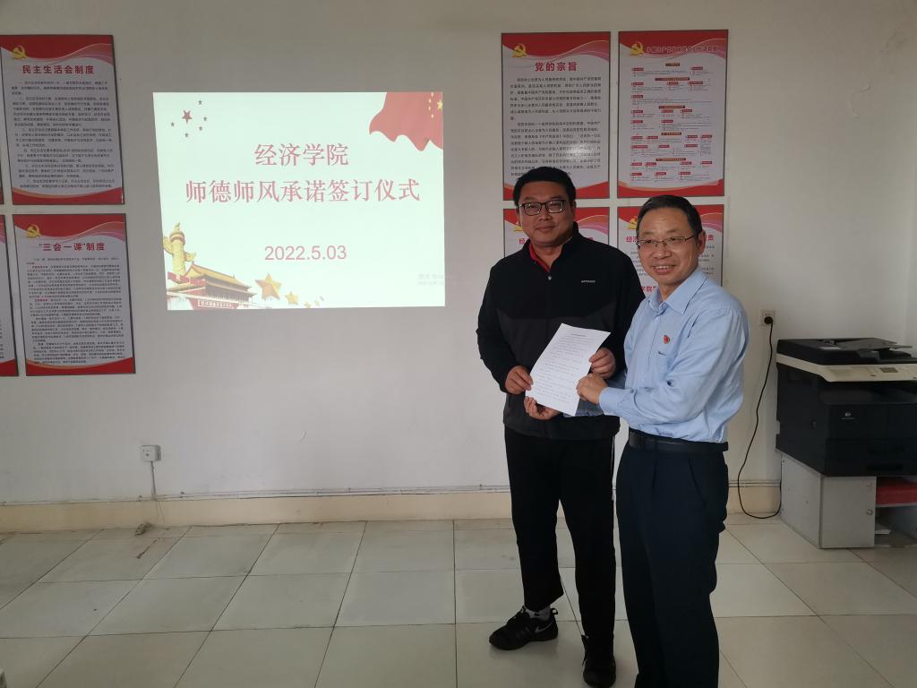 会议传达了《关于完善高校教师思想政治和师德师风建设工作体制机制的指导意见》及《关于加强和改进新形势下高校思想政治工作的意见》文件精神,并举行《beat365正版唯一官网必一教师师德承诺书》签订仪式。