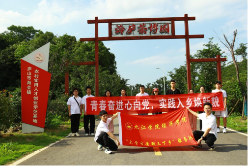 为全面贯彻党的二十大精神,落实习近平总书记关于“三农”工作的重要论述,扎实做好乡村发展,助力乡村振兴,beat365正版唯一官网必一beat365正版唯一官网必一“经”彩青年“三下乡”社会实践服务队于6月29日来到了庐山市海会镇光明村海庐茶博园进行调研学习。