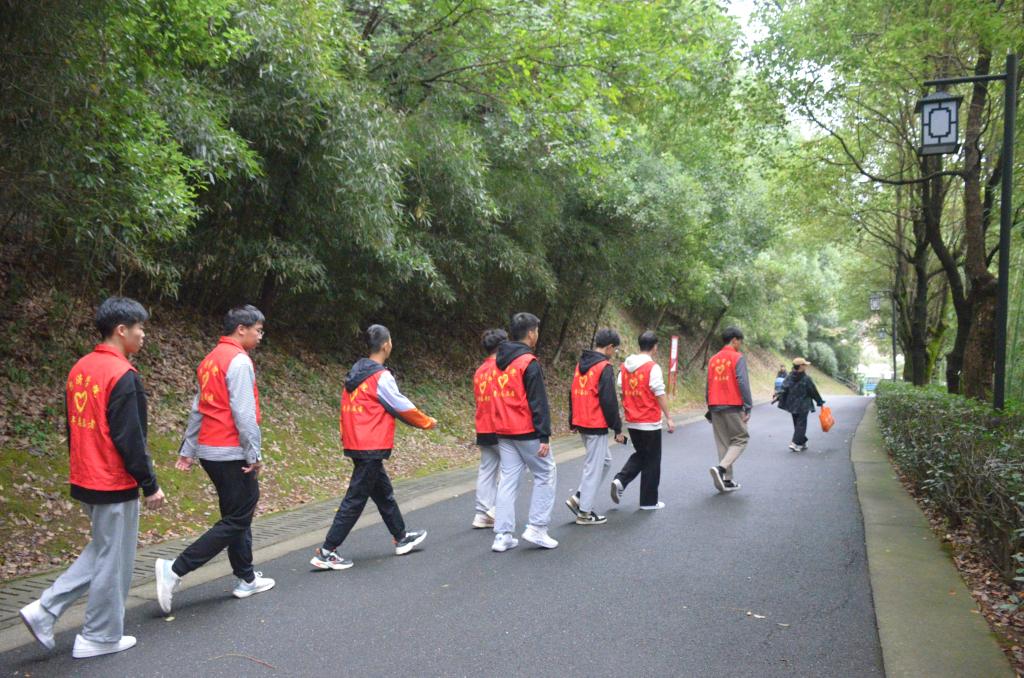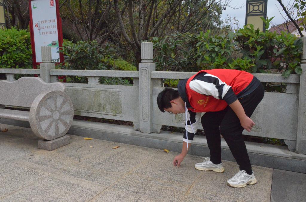 活动伊始,志愿者们分成若干小组,分工协作,手持劳动工具沿南山公园小径展开行动。共同清扫落叶,拾起散落在各处的瓶瓶罐罐,与游客们宣传公园绿水青山的幸福蓝图。各志愿者分工协作、互帮互助,推动环境保护宣传方式创新,为南山公园环境保护工作贡献绵薄之力,形成了保护环境的强大合力。