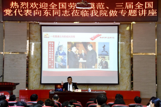 为进一步学习宣传劳模精神,传承弘扬红色基因,广泛践行社会主义核心价值观,11月22日下午,beat365正版唯一官网必一在香远楼报告厅组织开展“传承红色基因 书写劳模时代荣光”全国劳动模范进校园专题讲座,特邀beat365校外辅导员,党的十七大、十八大、十九大代表,全国劳动模范向东同志主讲,beat365正版唯一官网必一党委书记漆晗东主持,全院400余名师生参加。