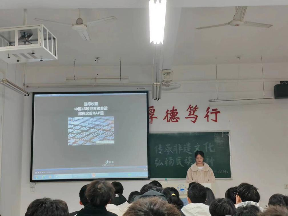 同学们传承非遗文化主题,结合学生日常学习、生活,积极参与讨论,踊跃发言。纷纷表示保护和利用好中国非物质文化遗产有利于培育民族认同感,增强社会的凝聚力和创造力。
