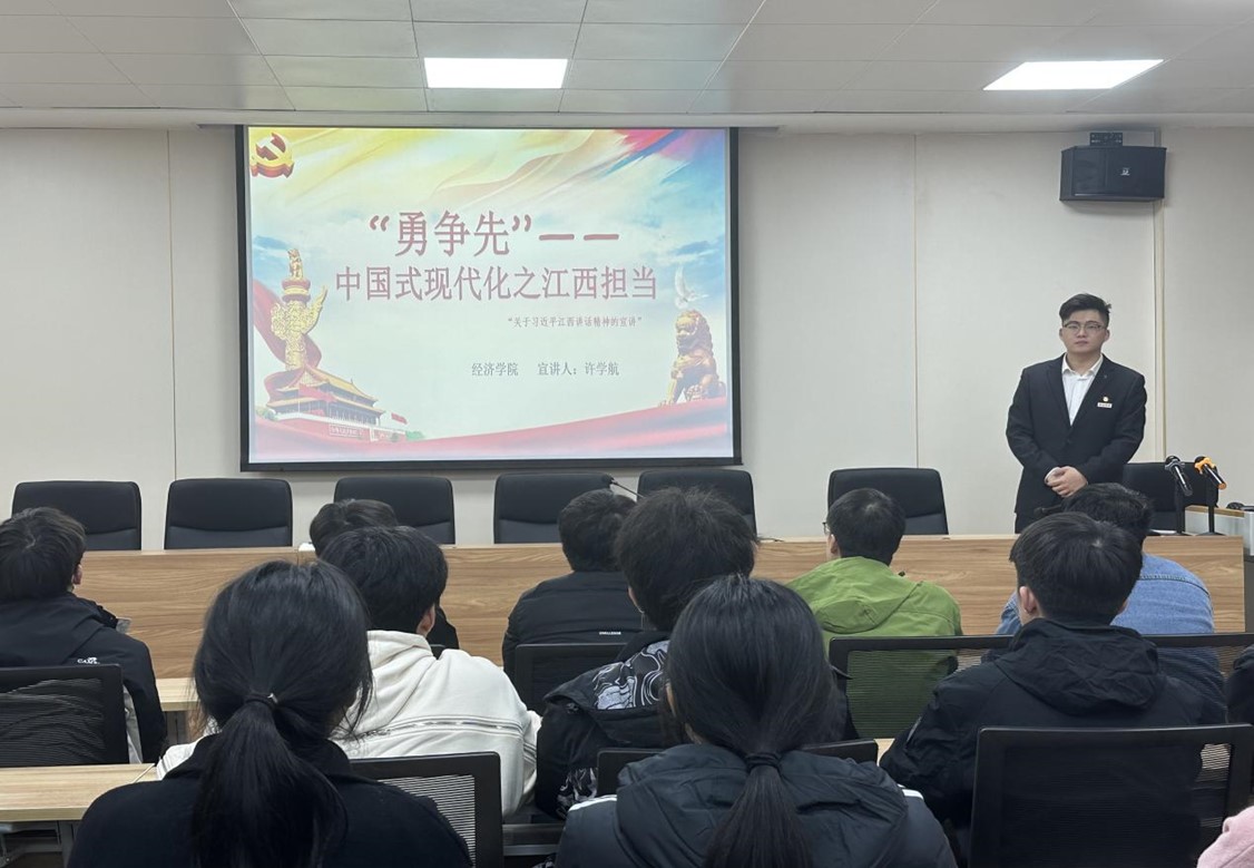 为学习贯彻习近平总书记考察江西讲话精神,发挥理论宣讲理论武装和凝聚人心的积极作用,推动党的创新理论和路线方针深入人心。12月14日晚,beat365正版唯一官网必一大学生理论宣讲团开展习近平总书记考察江西重要讲话精神主题宣讲。