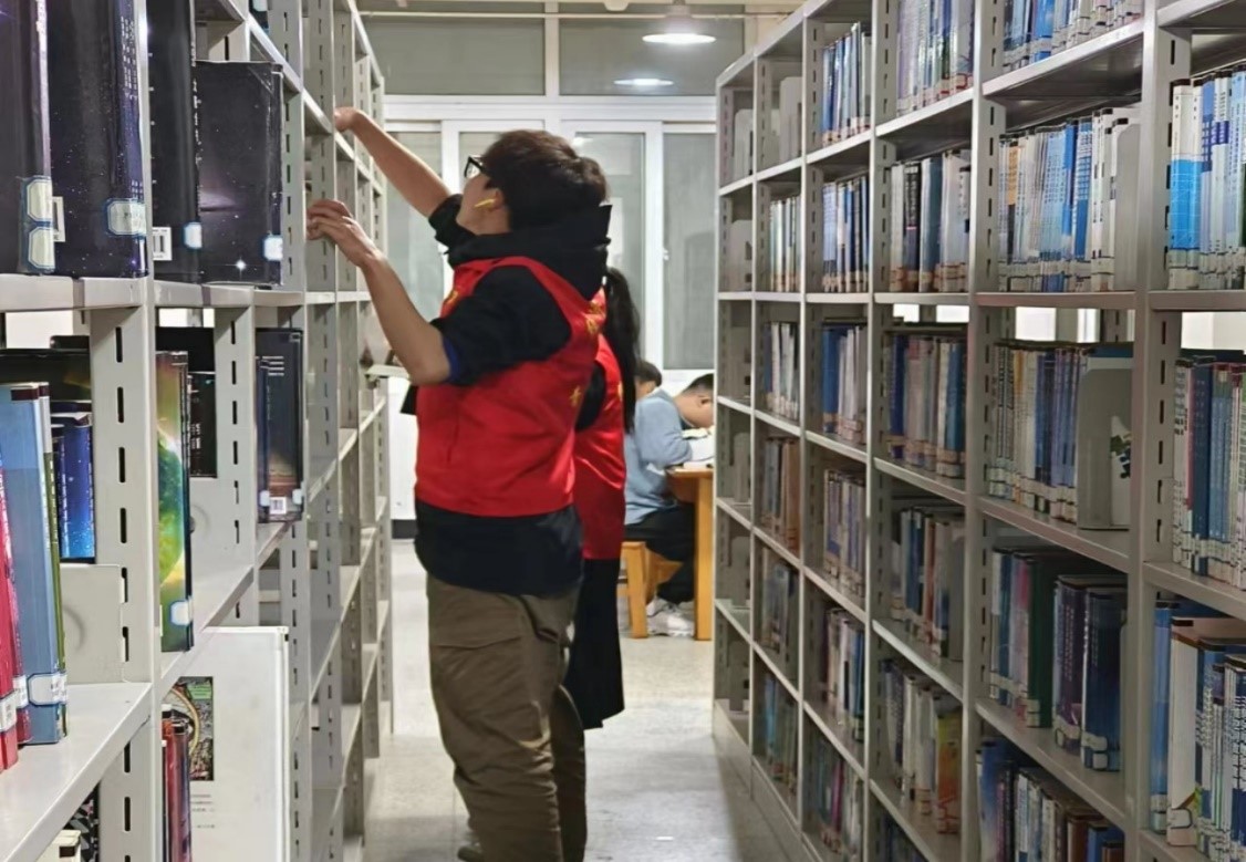活动开始,志愿者们按照分配的任务配合默契,擦拭书柜的抹布一旦脏了立刻有人提装有干净水的水桶赶来,水桶里的污水也总能被立刻撤换,提供干净的水以便清洗抹布更好拭去书柜上的灰尘,走廊上的垃圾,学习桌下纸张,都逃不过志愿者的眼睛,他们一丝不苟地清理每个角落,为读者创造出一个干净清爽的阅读环境,他们的付出就像春风化雨,润物无声,但却让人感受到一种温暖的力量。