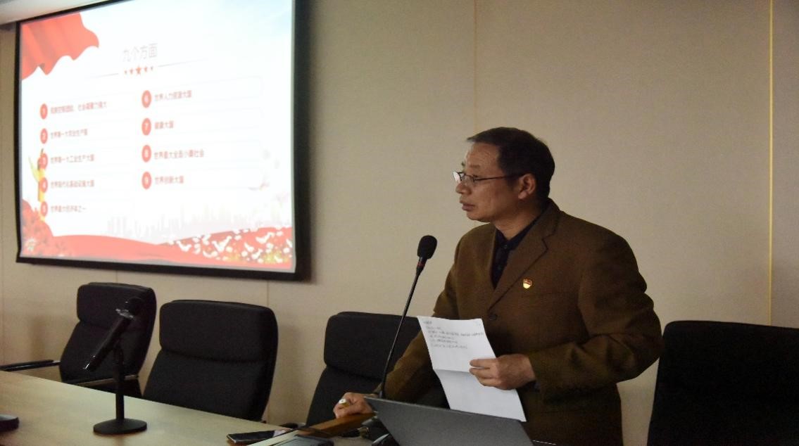 活动伊始,漆书记带着我们一同回顾中国共产党百年光辉历程,围绕"四个成就",讲述中国共产党带领人民从站起来、富起来、强起来的伟大飞跃。接着,通过PPT向同学们讲述新时期中国建设的"九个方面",诠释中国式现代化的伟大成就。最后,漆书记指出,未来属于青年,希望寄予青年。每一个新时代青年都应该以实现中华民族伟大复兴为己任,不负党和人民的殷切期盼,为社会主义现代化建设出谋划策。