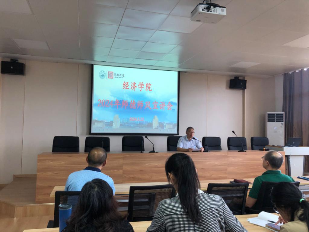 讲座结束后,学院全体师生观看师德师风教育警示片。