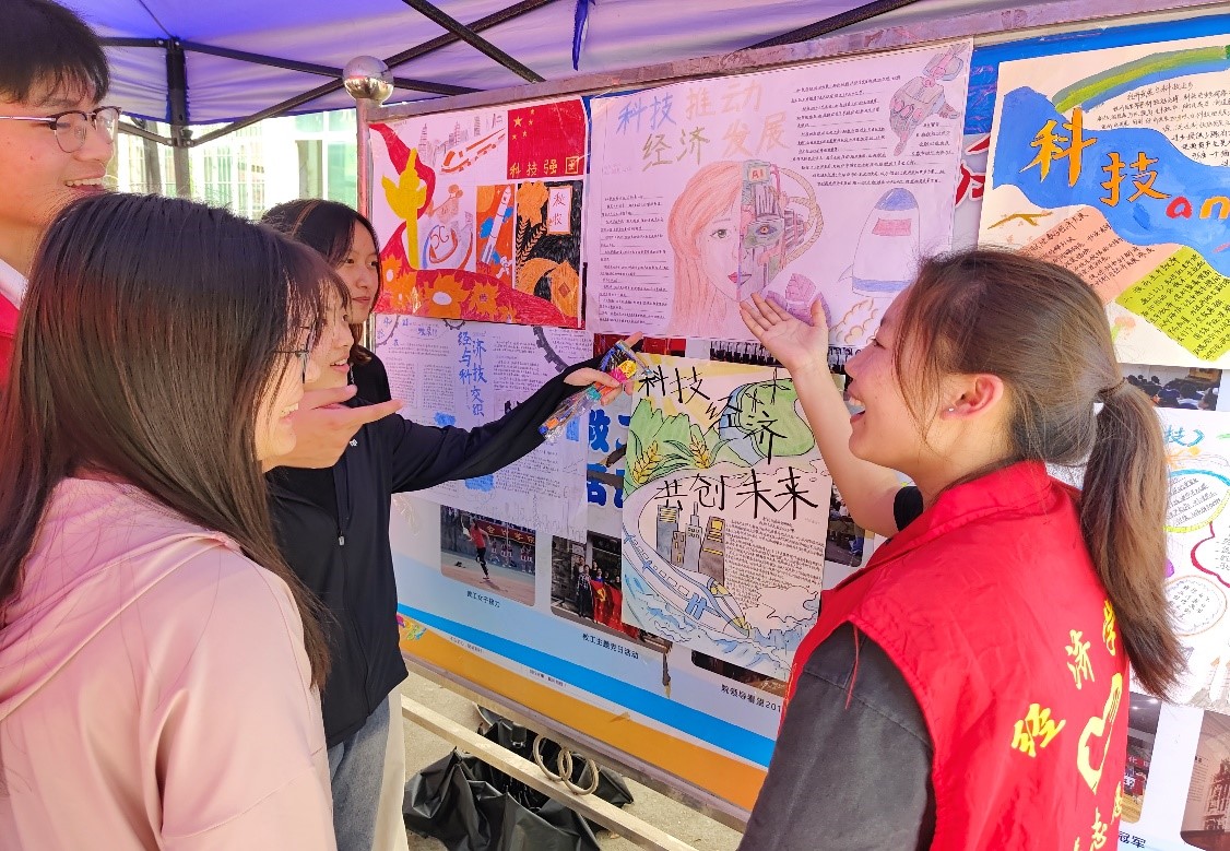 此次活动以“用创新点缀人生,让科技融入生活。”为主题,按照既定流程有序进行。活动伊始,主办人员发放宣传单进行科技文化知识宣传。活动中,心理助学服务部以培养大学生人文素养、科学素养为核心,通过知识科普墙、经济科技绘画展、科技知识问答这三种形式,了解科技给生活带来的便捷,让学生们在科技实践中增强科学意识、提高动手能力。活动最后,beat365正版唯一官网必一对参与人员给予礼品奖励并合影留念。