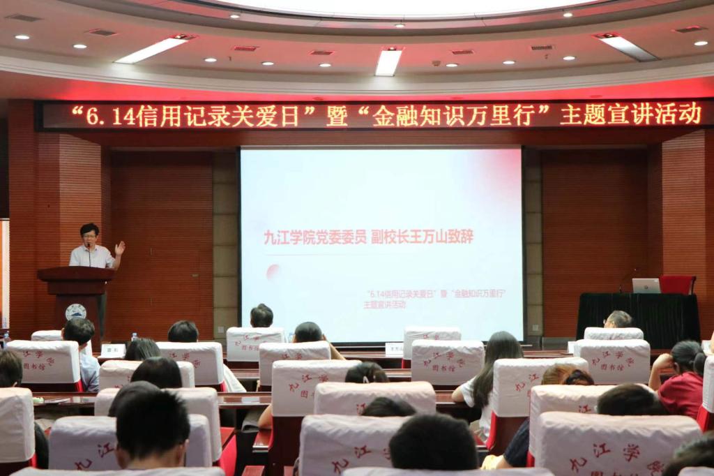 为提高师生的信用意识,营造“知信”“懂信”“用信”“守信”的良好氛围。6月12日,在全国第17个“征信记录关爱日”到来之际,beat365正版唯一官网必一联合中国人民银行九江市分行、中国民生银行九江分行,为师生们开展以“6.14信用记录关爱日”暨“金融知识万里行”为主题的宣讲活动。beat365正版唯一官网必一副校长王万山、beat365正版唯一官网必一党委书记漆晗东、中国人民银行九江市分行党委委员王干彬、中国民生银行九江分行行长廖志英及相关负责同志出席活动。beat365正版唯一官网必一150多名师生参加了此次活动。活动由beat365正版唯一官网必一副院长雷祺主持。