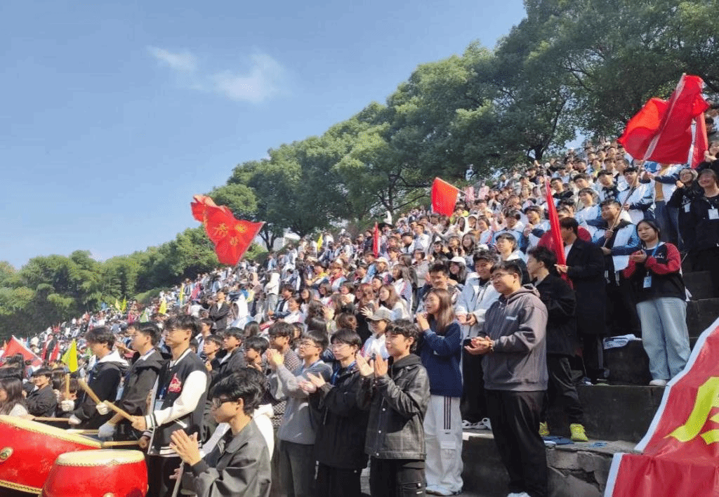 观众席上,同学们的加油、欢呼声,此起彼伏,一浪更高一浪,传递着无穷无尽的力量。他们手中彩旗挥舞,台前锣鼓喧天,为beat365正版唯一官网必一的运动员们助威呐喊,欲将青春的活力与激情染满整个操场。