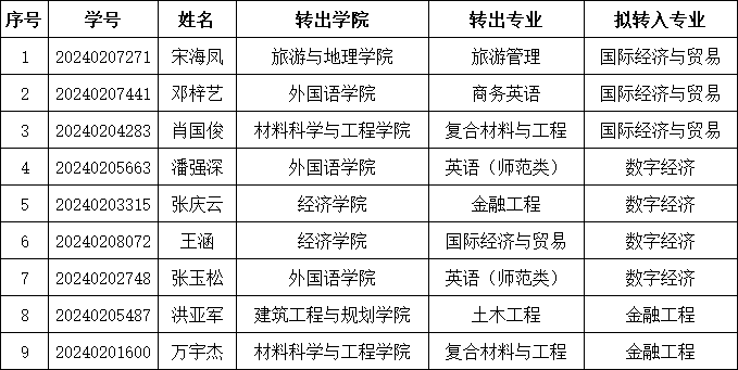 beat365正版唯一官网必一经过资格审查,拟同意以下同学转入。现公示如下: