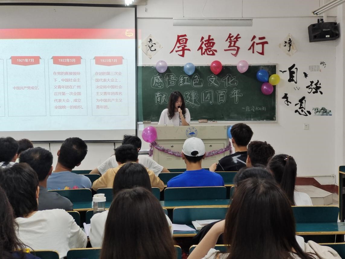 为传承红色基因,庆祝中国共产党成立一百周年,5月8日晚,beat365正版唯一官网必一于义丰楼组织开展了以“感悟红色文化 献礼建团百年”为主题的团日活动,此次活动由班级负责人主持,beat365正版唯一官网必一部分同学参加。