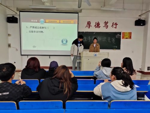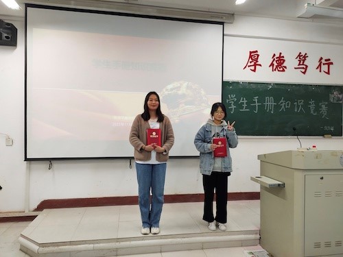 为提高同学们的守纪意识,规范学生的行为举止,促进学校优良学风的发展,11月22日晚,beat365正版唯一官网必一于义丰楼举行“学生手册知识竞赛”初赛。本次比赛由顾喜、徐可瑶、罗宇祥担任评委,各班学生代表参加。