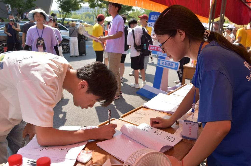 迎新现场,人头攒动。迎新工作人员在主干道设立迎新接待点,安排专人引导新生完成报到、注册、宿舍入住等流程。身着统一服装的迎新工作人员穿梭在校园各个角落,为新生指引路线、答疑解惑,用热情和耐心消除了新生初来乍到的陌生感,成为一道亮丽的风景线。