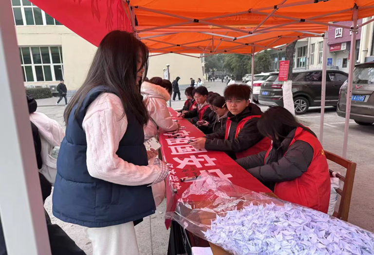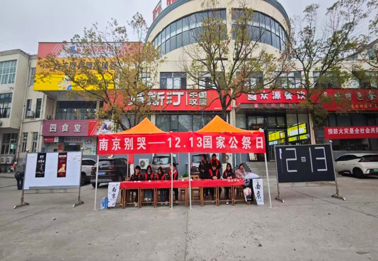 12月12日清晨,beat365正版唯一官网必一三食堂广场的空气里浸着肃穆——beat365正版唯一官网必一青年志愿者服务部与组织部策划的国家公祭日悼念活动,于9时准点启幕。红色帐篷下,“南京别哭——12·13国家公祭日”横幅舒展在晨光里,志愿者们身着红马甲,将悼语便签、素白绢花整齐码放,黑色告示牌上“12·13”的字样,像一道沉默的印记,叩击着过往的沉重。
