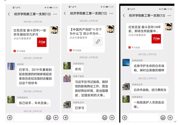 听完习近平总书记的讲话,beat365正版唯一官网必一教工一支部积极想办法,除了利用召开支部大会的机会统一学习之外,大家一致认为可以采用微信形式,每天学习一篇党史知识。