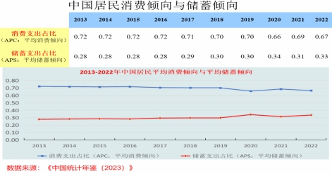 图1:2013-2022年中国居民消费倾向与储蓄倾向